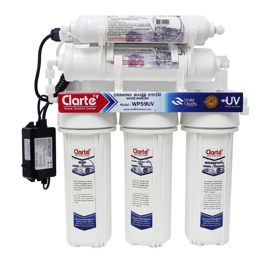 Clarte' เครื่องกรองน้ำรุ่น WP59UV ซื้อขายสินค้า สิ่งที่คุณควรทำ ก่อนทำการซื้อ บนร้านค้าออนไลน์ ช็อปปิ้งง่ายๆ แค่ปลายนิ้วของคุณ ศึกษาข้อมูลเกี่ยวกับสินค้าก่อนซื้อ, เครื่องกรองน้ำสวนสยาม ในการเปรียบเทียบเพื่อเป็นประโยชน์สำหรับคุณในการเลือกซื้อสินค้า ควรอ่านคุณสมบัติ คุณลักษณะ ของสินค้าก่อนซื้อ ว่าเป็นไปตามความต้องการสูงสุดของคุณหรือไม่ เพื่อให้คุณได้ซื้อสินค้าไปใช้ประโยชน์ได้สูงสุด และเต็มประสิทธิภาพ เฉพาะร้านค้าที่เราวางใจเท่านั้น, เครื่องกรองน้ำสแตนเลส เครื่องกรองน้ำให้สะอาด เพราะน้ำสะอาดนับเป็นหนึ่งในปัจจัยสี่ที่สำคัญอย่างยิ่งยวดต่อการดำรงอยู่ของสิ่งมีชีวิตทั้งโลกนี้ โดยเฉพาะอย่างยิ่งมนุษย์ มนุษย์ทุกคนต้องใช้น้ำสะอาดในการดำรงชีวิต ไม่ว่าจะเป็นการดื่มกินหรือชำระร่างกาย ชำระล้างสิ่งของ การอาบน้ำ การซักผ้า การใช้น้ำในการทำการเกษตรกรรมและอุตสาหกรรม เป็นต้น , เครื่องกรองน้ำภาษาอังกฤษ ปัจจุบัน ปัญหาการขาดแคลน้ำสะอาดกำลังทวีความรุนแรงเพิ่มมากขึ้น ส่งผลกระทบเป็นวงกว้างต่อผู้คนจำนวนมากมาย ภาวะปราศจากน้ำจืดใช้ในการบริโภคและอุปโภค อาจส่งผลถึงการเกิดโดรคระบาดอันเนื่องมาจากการใช้น้ำสกปรกที่มีเชื้อโรคปะปนได้ ,